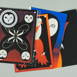 BEI VOLLMOND SIND DIE EULEN WACH,WÄHREND DER KAKADU SEIN NICKERCHEN HÄLT. Die handgesiebdruckte Postkartenserie mit ...von Josie Majetic am 15.01.2013