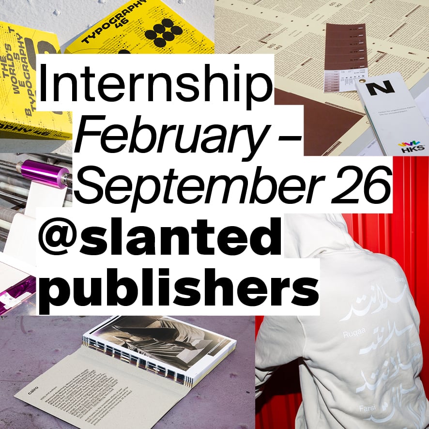 Du liebst Typografie und Editorial Design und möchtest in einem internationalen Verlag arbeiten? Dann bist du bei uns genau richtig! Wir vergeben ein 6-monatiges Pflichtpraktikum im Bereich Redaktion/Grafik ab Ende Februar 2026 und suchen eine(n) engagierte(n) Studierende(n), der/die Lust hat zu erfahren, wie wir arbeiten und für 6 Monate Teil des Slanted-Teams wird.