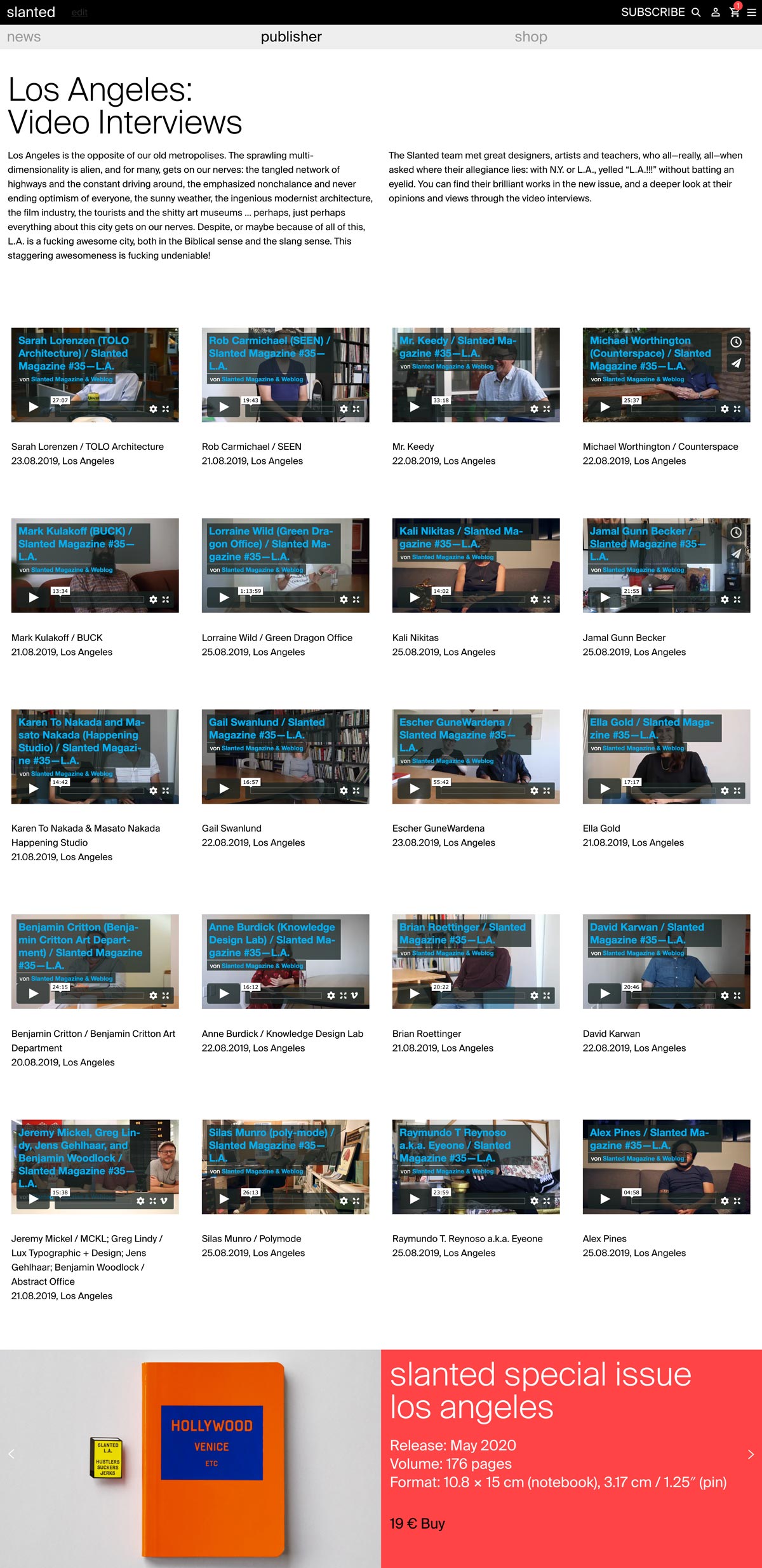 For Slanted Magazine #35—L.A. the Slanted team met many great designers, artists and teachers, who all—really, all—when asked where their allegiance lies: with N.Y. or L.A., yelled “L.A.!!!” without batting an eyelid. You can find their brilliant works in the new issue, and a deeper look at their opinions and views through video interviews that can be watched online on our video platform for free!