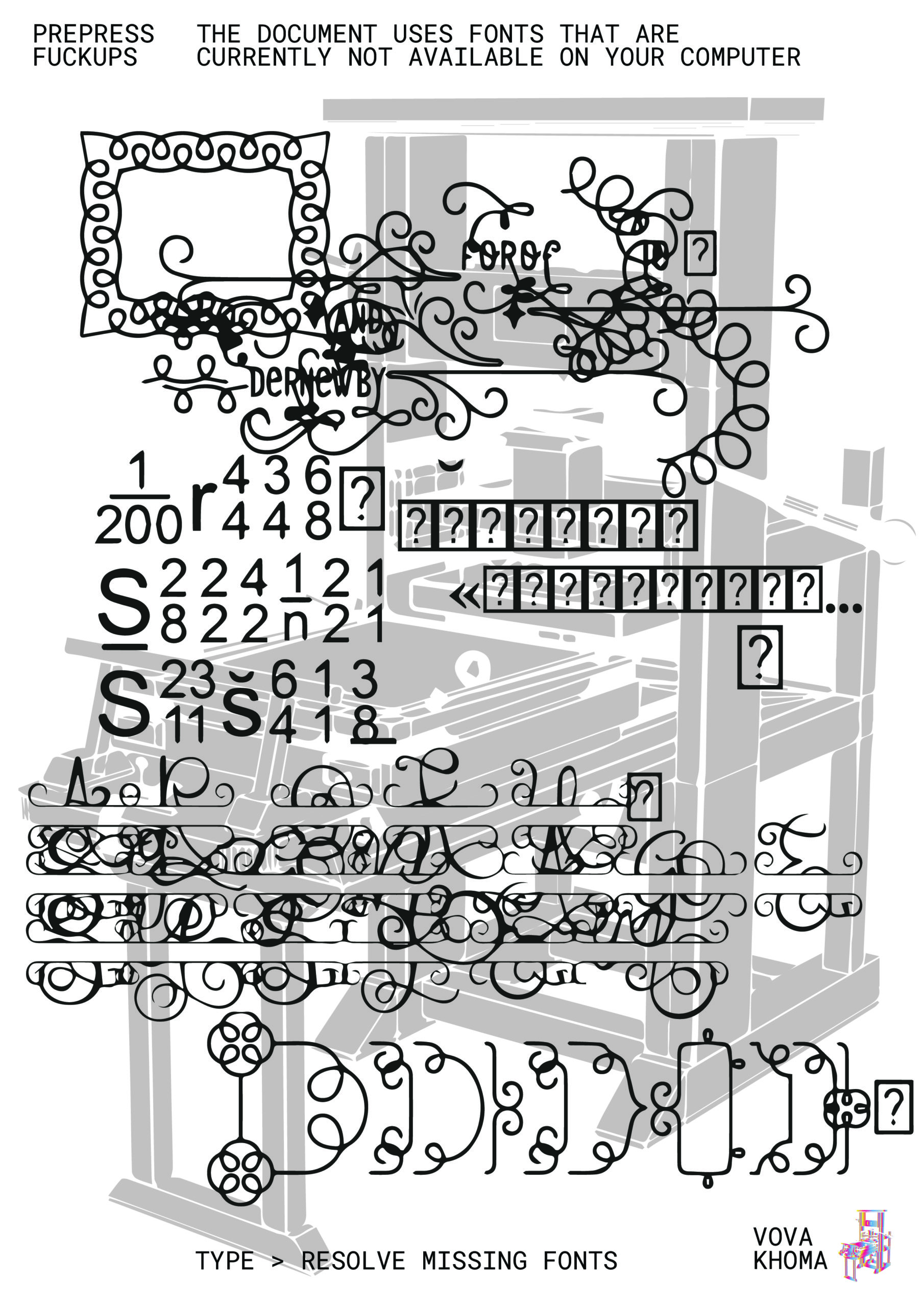 The author hates prepress. There are always problems: he sends files in the wrong format, uses the wrong color mode, or forgets to convert fonts to outlines. Missing fonts are one of his least favorite mistakes.