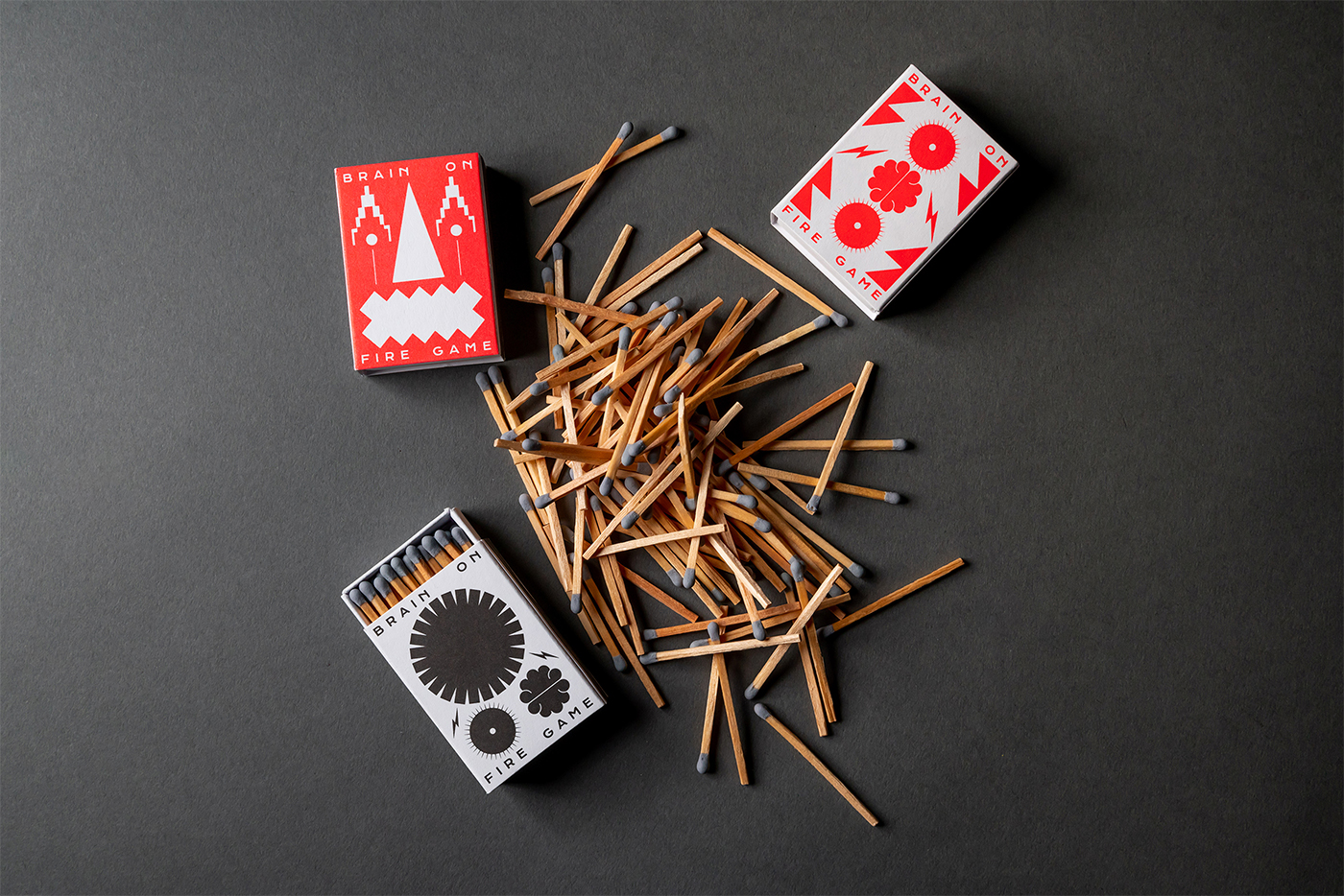 This fresh take on the classic matchstick puzzles will set your brain on fire. Kids will love the set of 6 different matchboxes, each featuring a different neon orange and black illustration of renegade matchsticks, brains, flames, and explosions.