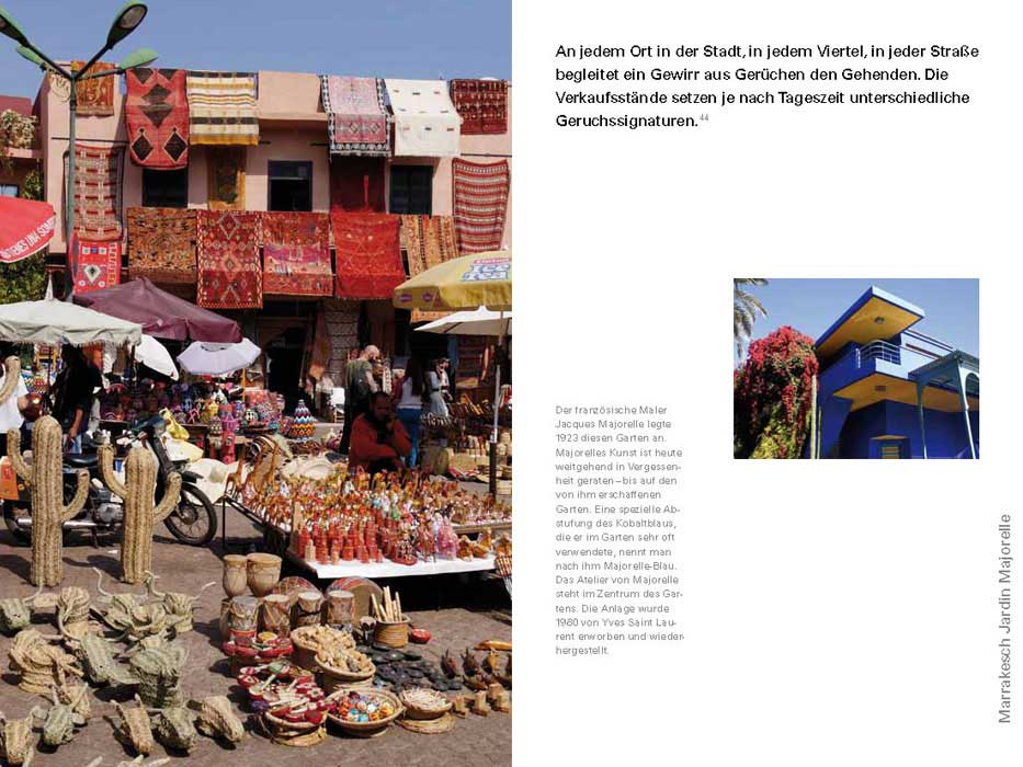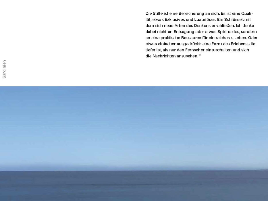 It is precisely the dialogue between text and image that is particularly stimulating in this book. Concrete information about individual places and landscapes can be found in an additional marginal column. The landscape and city views are not merely interpretations of reality, but also traces—like a footprint.