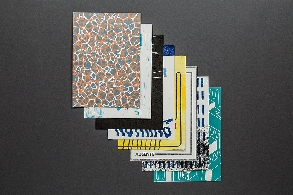 Techniques: linocut, photopolymer, wrapping film, riso (folder)