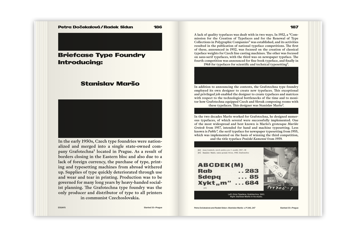 Slanted Magazine #33—Prague comes with contributions by 20YY Designers, Patrik Antczak, Anymade Studio, Artishock, Michal Bačák, Peter Bankov, Filip Blažek, Braasi Industry, Briefcase Type Foundry, Tomáš Brousil, Monika Čejková, Čezeta motors, Anežka Hrubá Ciglerová, Design Herynek, Displaay, Petra Dočekalová, Kristina Fišerová, Fontstore, Karel Haloun, Heavyweight Digital Type Foundry, Martin Hrdina, Jitka Janečková, Kolektiv Studio, Jan Šrámek Kolouch, Linda Kudrnowská, Laboratoř, Františka Lachmanová, Zuzana Lednická, LINOSTOCK, Ian Lynam, Dermot Mac Cormack, Matýaš Machat, Man—Machine Type, Master & Master, Simon Matejka, Monsters, Veronika Rút Nováková, Oficina, OKOLO, PageFive, Parallel Practice, PBG, Pavla Pauknerová, Tomáš Pospiszyl, ReDesign, Rosetta Type Foundry, Side2, Radek Sidun, Adam Štěch, Storm Type Foundry, Studio adela&pauline, Studio Marvil, Studio Najbrt, Studio Novák & Balihar, Studio Petrohrad, Suitcase Type Foundry, Superior Type, superlative.works, Marta Sylvestrová, taketaketake, Tomski&Polanski, TypeTogether, uathentic, Rostislav Vaněk, and _ZVUK_.