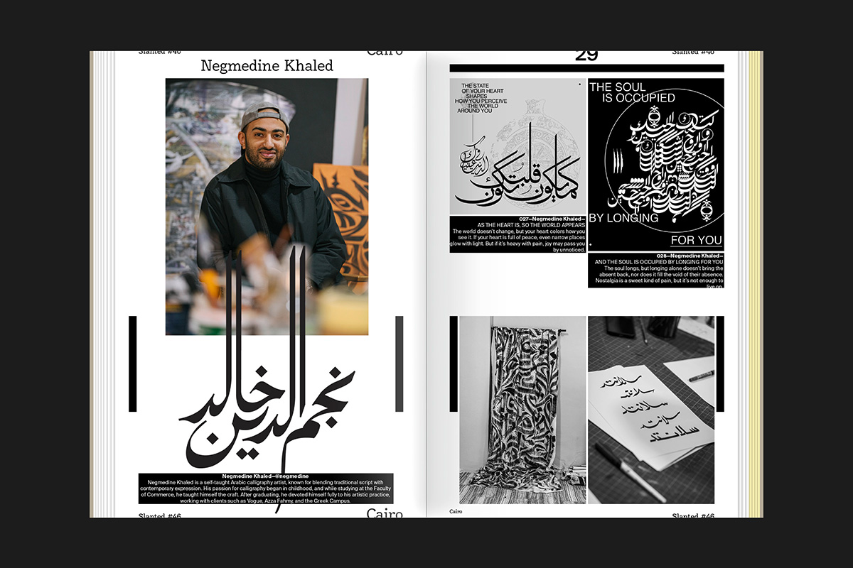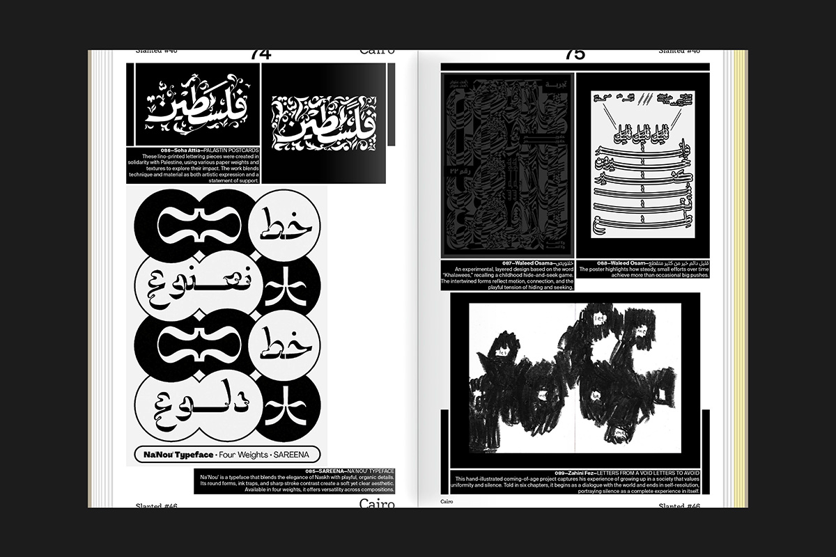 From graphic design, typography, and visual communication to architecture and product design, Slanted #46 showcases outstanding projects that are shaping the cultural present and future of the region. Whether through progressive branding concepts, experimental approaches, or striking visual storytelling, this issue reflects the powerful creative energy flowing through Egypt. Slanted gives space to designers, illustrators, and artists from Cairo, other Egyptian cities, and abroad—highlighting their work and personal statements. In-depth essays and articles on cultural, social, and creative topics related to Cairo and Egypt round out the issue.