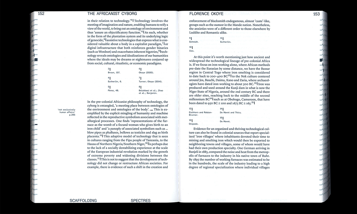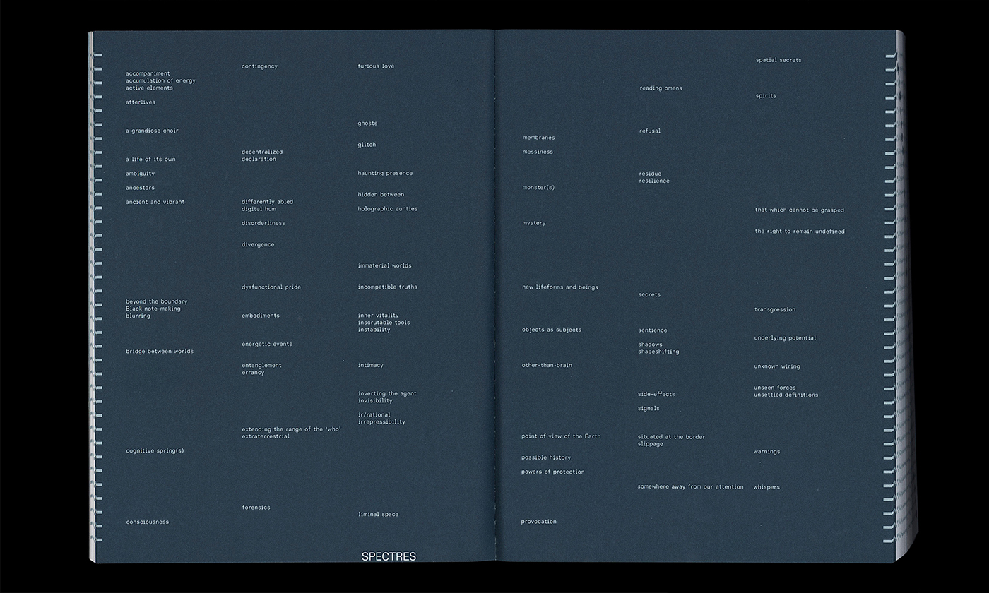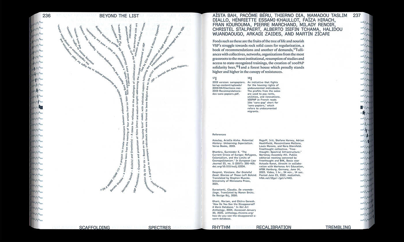Contributions: Paula Albuquerque, Kader Attia, Aïsta Bah, Scott Benesiinaabandan, Pac.me B.ru, Cláudio Bueno, Derrais Carter, Raven Chacon, Joana Chicau, Guy Cools, Laura Coombs, Siobhán K. Cronin, Will Daddario, Edwidge Danticat, Thierno Dia, Mamadou Taslim Diallo, Henriette Essami-Khaullot, Silvia Federici, Mariana Fernández Mora, Ella Finer, Jem Finer, Mashinka Firunts Hakopian, Dakin Hart, Faïza Hirach, Candice Hopkins, Christine Hvidt, Carol R. Kallend, Theun Karelse, Danel Khojayeva, Suzanne Kite, Fran Kourouma, Jaron Lanier, Jason Edward Lewis, Pia Lindman, Gļeb(s) Maiboroda, Pierre Marchand, Michael Marder, Nanako Nakajima, Florence Okoye, Marina Orlova, Jogi Panghaal, Moisés Patrício, Rory Pilgrim, Elisabeth (elieli) Raymond, Milady Renoir, Oscar Santillán, Laurel Schwulst, Mindy Seu, Camila Sposati, Christel Stalpaert, Corey Stover, Melita Stover Janis, Carolyn F. Strauss, Foluke Taylor, Alberto Isifin Tchama, Ovidiu Ţichindeleanu, Rolando Vázquez Melken, Evelyn Wan, Halidou Wuandaougo, Arkadi Zaides, Joanne Zerdy, Martín Zícari