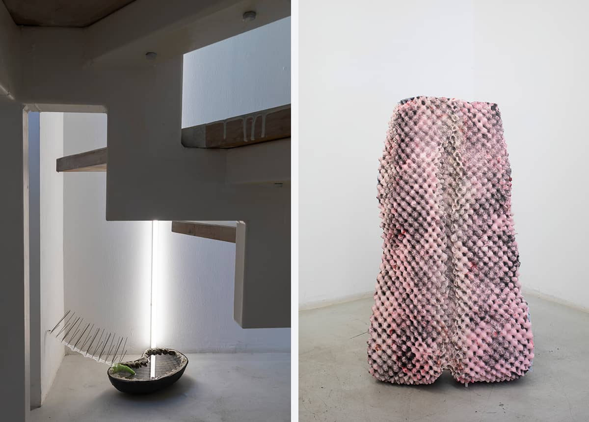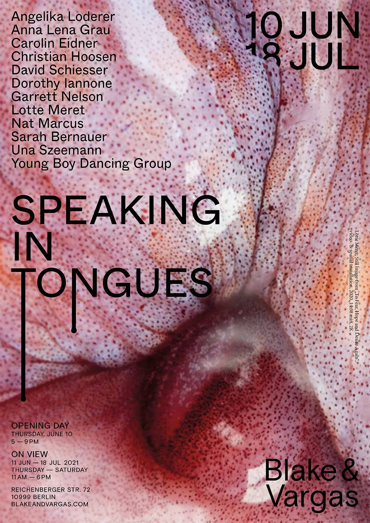 The collective body in Speaking in Tongues, composed of the individual works in this exhibition, can be read as an artistic exploration of a body without organs. This imaginary body reveals itself without solidifying, constantly reshaping its contours. Through its permeable surface, it is able to merge with other bodies. Speaking in Tongues, the language of his body emerges as he speaks equally inwardly and outwardly.
