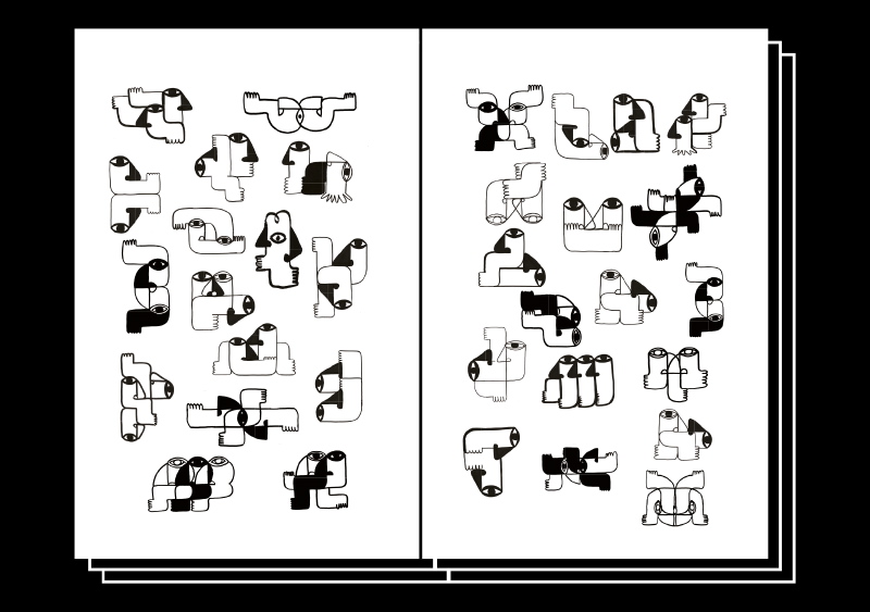 LEA BROUSSE lebt und arbeitet in Berlin. In der Publikation Fiktogram hat sie eine wunderbare Sammlung von verschränkten Figuren gezeichnet, welche mit- und ineinander verstrickt und verschmolzen sind. Mit einfachem, unkomplizierten Strich gezeichnet, bringt jede Seite einen zum Schmunzeln.