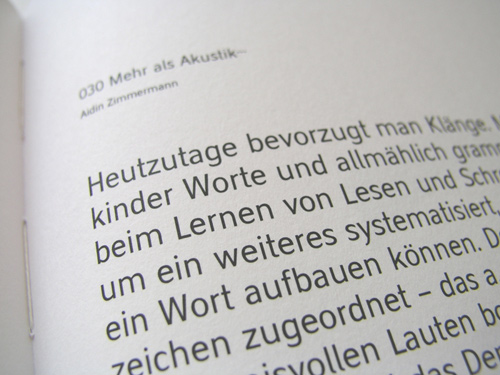 Die im Buch für Fließtextproben verwendeten Texte stammen von Aidin Zimmermann aus Stuttgart, der dort ein Buch mit dem Titel „100“ gestaltet hat. www.hundert.org ist die Webseite seines Projekts. Vielen Dank dafür.