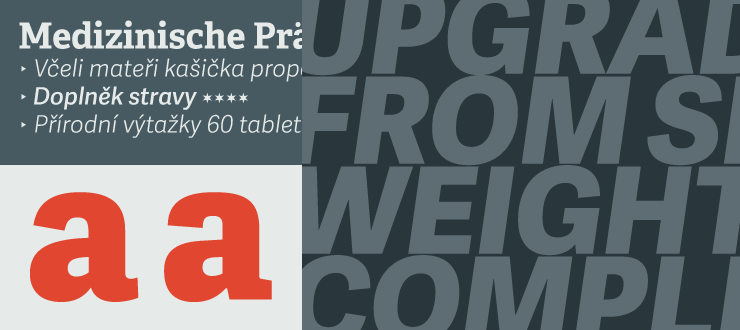 Adelle Sans is available in seven weights with their matching italics. Each one of these 14 styles is a perfect match in terms of weight and vertical proportions to its slab serif equivalent. This ensures a graceful fit between both font families in the same block of text, and a subtle, but noticeable, change of texture when used at similar point.