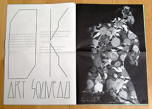 Das Magazin AMORE ist auf Zeitungspapier, zweifarbig gedruckt und arbeitet mit einer auffällig manieristischen Typo, die ihre Vorbilder irgendwo im italienischen Art Deco oder bei den Futuristen hat. Daneben gibt es wunderbare sw 'Poster' mit Fotografien und Grafiken, die die Typokompositionen kongenial ergänzen.