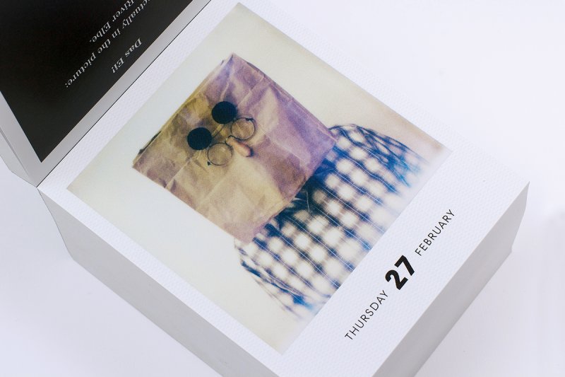 Ein Abreißkalender, wie man ihn aus Großmutters Küche kennt. Dieser Kalender enthüllt Tag für Tag ein neues Polabild mit einer eigenen kleinen Geschichte. So kann man das ganze Jahr hindurch kleine Schmuckstücke von bekannten Fotografen und Newcomern entdecken. Auf der Vorderseite jedes Kalenderblattes befindet sich ein Pola, auf der Rückseite eine kleine Story zum Hintergrund des Bildes sowie Infos zum Fotografen. Ein Kleinod und Hingucker für Schreibtisch, Fensterbrett, Kuchenbuffet, Hutablage, Schaufenster und Nachttisch.