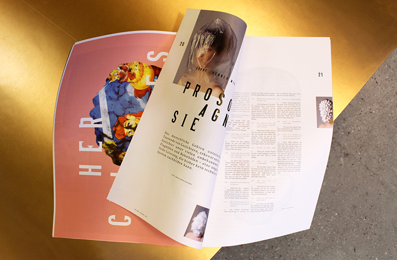 Im Pressetext heißt es: »Was beim Betrachten des Magazins sofort auffällt: Das Editorial Design der Ausgabe zu «Bon Visage» wird durch ihren plakativen Umgang mit Illustration und Platz sehr speziell. Die Gestaltung des Magazins besticht durch die eigens dafür entwickelte Typografie aus dem Büro Riesling Type. (Ganz großes Tennis, Jungs!) Es findet ein bewusstes Spielen mit der Ordnung in der Unordnung statt. Der großzügige Umgang mit Raum im Magazin lässt die neu gestaltete Schrift puristisch und eigenständig wirken – genau wie der Rest der Gestaltung. Was sich sofort feststellen lässt, wenn man dieses wundervolle Blatt in den Händen hält ist die künstlerisch-experimentelle Annäherung an das Thema des Gesichtsverlustes und der Identität. Spaß und Ernst liegen hier nur Seiten voneinander entfernt und verschmelzen durch die Mischung aus Bildreihen, Interviews und redaktionellen Beiträgen zu einem sehr dynamischen Projekt.«