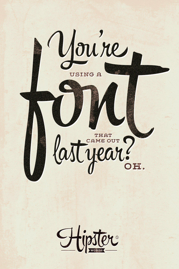 Slanted verlost 5 Poster (Award, Last year’s font, Operating System, Doesn’t exist, Can’t buy cool siehe abgebildete Poster unten) unter den Lesern. Um an der Verlosung teilzunehmen schreibt eine Mail mit den Betreff “Hipster Posters” sowie eurem Lieblingsmotiv und an [email protected]. Für den Versand benötigen wir zudem eure Postadresse. Die Verlosung endet am Donnerstag, den 01.08.2013, 11 Uhr. Der Rechtsweg ist ausgeschlossen. Wer an der Verlosung teilnimmt, erklärt sich damit einverstanden, News von Slanted zu erhalten. Viel Glück!