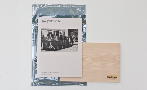 Uns liegen 4 Ausgaben aus den Jahren 2010 und 2009 vor. Jede Ausgabe hat einen ganz eigenen Look, der sich mit jeweiligen Thema der Ausgabe auseinandersetzt. Der Mix von monothematischen Ausgaben, die an sich nichts mit den Projekten des Büros zu tun haben und Ausgaben, die zu einem bestimmten Thema Arbeiten beleuchten, finde ich spannend. Eine schöne Weise, seine Kunden und Freunde auf dem Laufenden zu halten und nicht in eine reine Werkschau zu verfallen.