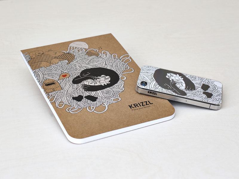 Das iPhone hat seinen Ruf als schönstes Smartphone noch immer nicht verloren, seine Einzigartigkeit hingegen schon. Das führt nicht nur zu Verwirrung auf dem Kneipentisch sondern auch zu immer ausgefalleneren Cover-Ideen auf dem Markt. Strass-Steine, Gameboy-Optik oder Krokoleder, es findet sich fast alles in den Regalen der Handyverkäufer. Diesen in Serie produzierten Printobjekten steht mit KRIZZL die eigene Zeichnung gegenüber. Der Lippenstiftabdruck der Freundin, die Abfahrtszeiten der U-Bahn oder das zeichnerische Werk der dreijährigen Tochter – die analogen Bilder fallen auf und schützen nicht nur vor Kratzern sondern mit Sicherheit auch vor Verwechslung.