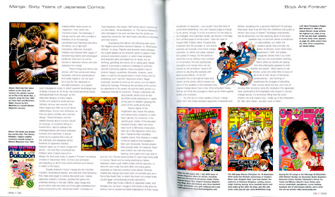 Was macht die japanische Comic-Kultur aus? Wie unterscheiden sie sich von europäischen und amerikanischen Comics? Streitfragen um Zensur und Protest. Welche Genres ziehen die Mädels vor, welche die Jungs? (Erwachsene natürlich mit eingeschlossen). Gekiga, der dunkle Bereich der Manga – brutale Samurais, verstörender Horror und apokalyptische Science Fiction. Die Rolle der Mangas als größtes japanisches Exportartikel mit weltweiter Einflussnahme. Das Leben und die Karriere Osamu Tezuka's, der Erschaffer von Astro Boy und der Begründer der Story Manga.