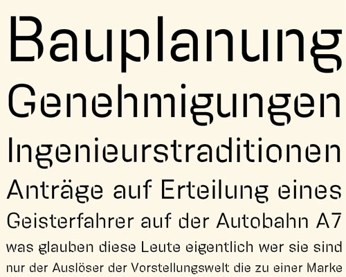 Deutschland hat eine starke Tradition von Industrieschriften. Sie wirken, wie von Ingenieuren konstruiert. Die Formen scheinen aus Kurven und Rechtecken zu bestehen. DIN Mittelschrift ist wohl die bekannteste Vertreterin. Aber auch die Schrift der alten Autokennzeichen.