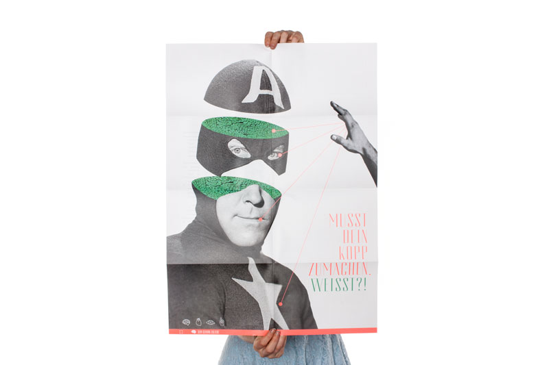 18 Plakate spiegeln Gemütszustände, Haltungen und Meinungen wider. Ein zusätzliches, etwas kleineres Plakat – mit Editorial, Inhaltsverzeichnis und Impressum – dient der Information und Orientierung. Das Inhaltsverzeichnis gibt eine mögliche Leserichtung vor, diese muss jedoch nicht eingehalten werden, der Leser kann auch seinen eigenen visuellen Eindrücken folgen.