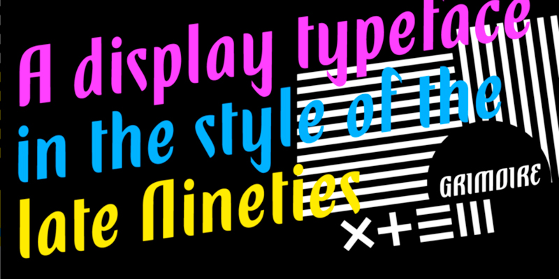 Grimoire lebt von dem Gedanken, zwei stark kontrastierende Konstruktionsprinzipien zu verbinden: Den zeichnerischen, technischen mit dem kalligrafisch, schreiberischen Schriftgestaltungsansatz. Die Schrift basiert auf einem modularen System, simuliert aber dennoch eine Schreibschrift. Felix Braden über seinen Entwurf: »Die Idee hat mich seitdem so fasziniert, dass ich viele Schriften nach diesem Konzept gestaltet habe, wie z.B. die bei Volcanotype veröffentlichte Bikini. Auch meine jüngste Schrift, die mehrfach ausgezeichnete FF Scuba lebt von diesem Konzept allerdings bin ich mit zunehmenden Alter weniger experimentierfreudig und will weniger exzentrische als vielseitig einsetzbare Schriften gestalten.«