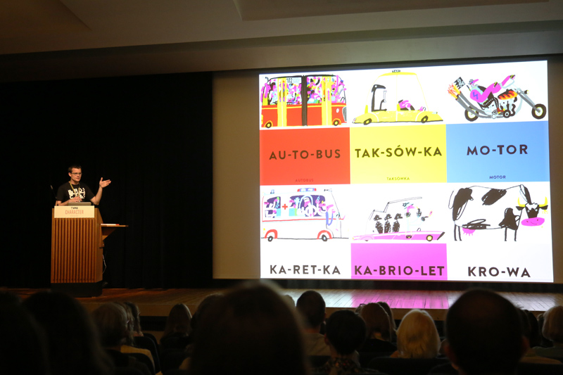 Es ging darum, wie er von seiner Plakatkunst, zu Kinderbüchern, zu Workshops mit Kindern und Erwachsenen und wieder zurück zum Buch kam. Sein Kinderbuch »Typogryzmol« (poln. Typo-Kritzler) das er erst kürzlich bei Dwie Siostry Publishing publizierte, basiert auf seiner Arbeit mit den Kindern. Es soll Kindern, Eltern und Lehrern auf der Suche nach neuen Lösungen helfen, den Zufall zu nutzen, Risiken einzugehen und andere Formen zu entwickeln. Es vermittelt dabei spielerisch die Grundlagen der Typografie und des Designs.