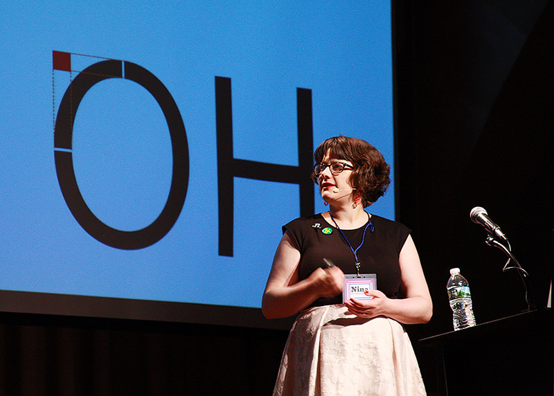 Another theme receiving heavy play at Typographics was editorial and publication design. Beginning with Eduardo Danilo on day one, and continuing with Francesco Franchi and Gabrielle Wilson on day two, attendees were given more than a few tips about selecting and implementing the best typefaces for the job at hand. After being treated to the eye candy that is Jakob Trollbäck’s motion design, Douglas Riccardi prepped the crowd for dinner with his “Culinary Abecedary.” Finally, Nina Stössinger charmed the audience with her pushback against the “continual erosion of the horizontal in Western type,” also known as her latest design, Nordvest. This reversed-contrast stressed-horizontal typeface began as a mistake, but evolved into a rallying cry for challenging established norms in type design.