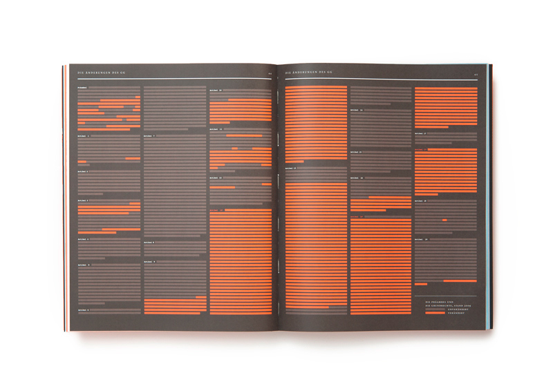 Die Chance des Themas ist seine scheinbare Zurückhaltung und gleichzeitig große gesellschaftliche Bedeutung. Darauf aufbauend lässt sich ein starkes inhaltliches Gerüst entwickeln, wodurch sich die Gestaltung erst voll entfalten kann. Sich dem Thema als juristischer Laie, aber als visueller Gestalter zu nähern, war kein Nachteil. Dadurch ergaben sich große Freiheiten, die ich spielerisch nutzen konnte.