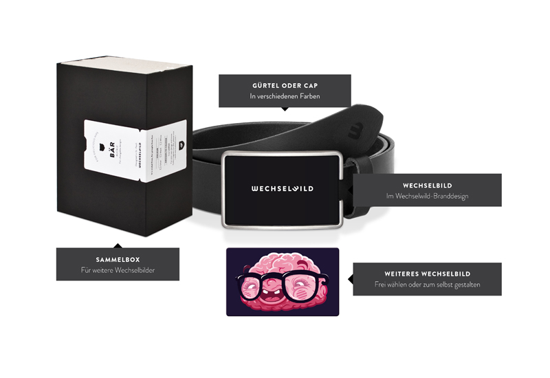 Wechselwild, das sind hochwertige Ledergürtel mit einem Rahmen an der Schnalle, der nach Tageslaune und Belieben mit unterschiedlichen Wechselbildern (Magneten) bestückt werden kann.