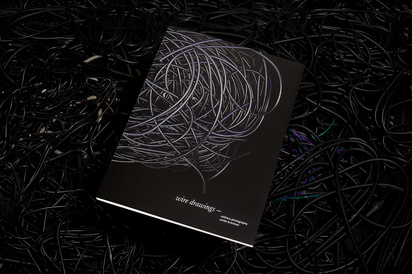 The artist first discovered the photogenic nature of cables on those platforms. The cables are often offered for sale displayed in boxes, piled in heaps, or lying on the floor in private spaces. The cable photographs evoke for her virtuoso drawings or paintings with an expressive style. Ulrike Brückner appropriates these photographs by experimenting with motif and pictorial space, replacing the original surroundings with black, partially processed backgrounds, and composing new visual worlds in the process. The contextual shift alters the view of the motifs and causes the multifaceted beauty of the cable arrangements to emerge. This effect is further enhanced by the serial presentation in wire drawings.